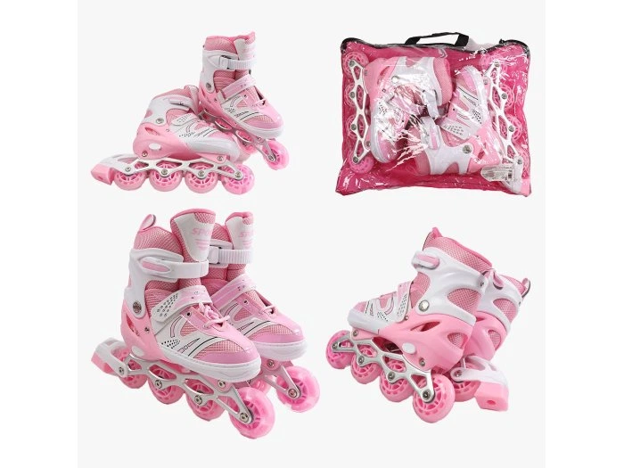 Ролики r-719-54 м розмір 34-38 (6) колір рожевий, колеса pu, колеса зі світлом, устілка 21-23 см, d коліс – 4,5 см, в сумці