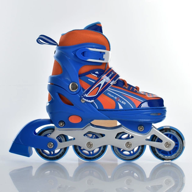 Ролики розсувні, шнурівка+бакля, алюм.рама, колеса ПУ 64мм світло, устілка 19см., синій A4149-S-BL (31-34)