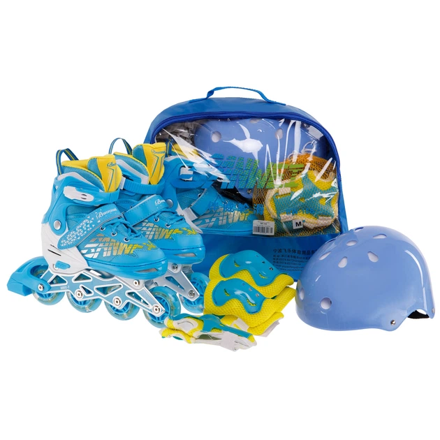 Роликові ковзани M 34-37 дитячі для хлопчика для дівчинки FL-FEILE колеса поліуретанові з підсвічуванням колір блакитний BW-