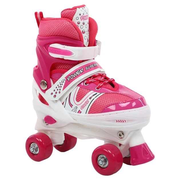 Ролики квади розсувні для хлопчика для дорослих для дітей розмір L 39-42 Banwei біло-рожеві SK-9454