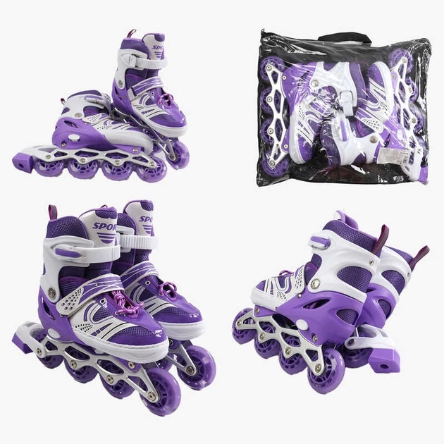 Ролики 52344-М /розмір 34-38/ колір – ФІОЛЕТОВИЙ колеса PU, ПЕРЕДНЕ КОЛЕСО СВІТЛО, d – 6.5 см, в сумці