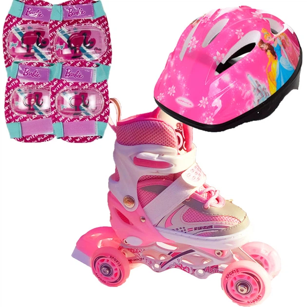 Роликові ковзани Ролики дитячі Набір Happy Combo Disney Rider (+ захист + шолом) з перестановкою коліс 29-33, Princess Barbi