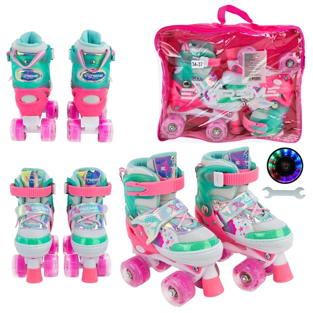 Ролики-квади Extreme розсувні 34-37, рожево-бірюзові RL25437 M