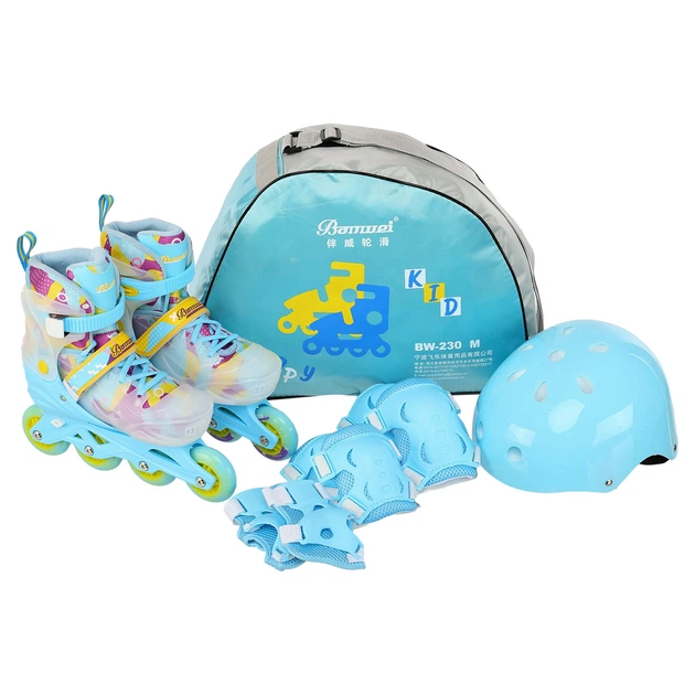 Роликові ковзани розсувні розмір M 35-38 дитячі із захистом та шоломом у комплекті з підсвічуванням Banwei блакитний BW-230