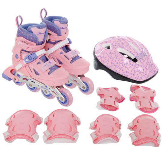 Роликові ковзани 30515-М, розмір 35-38, 4 колеса, із захистом і шоломом, з колесом, що світиться