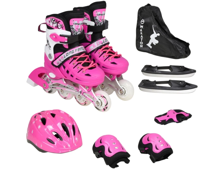 Розсувні ролики-ковзани Maraton Ice 2 в 1 з набором захисту та шоломом, колеса PU, розмір 34-37, Рожеві