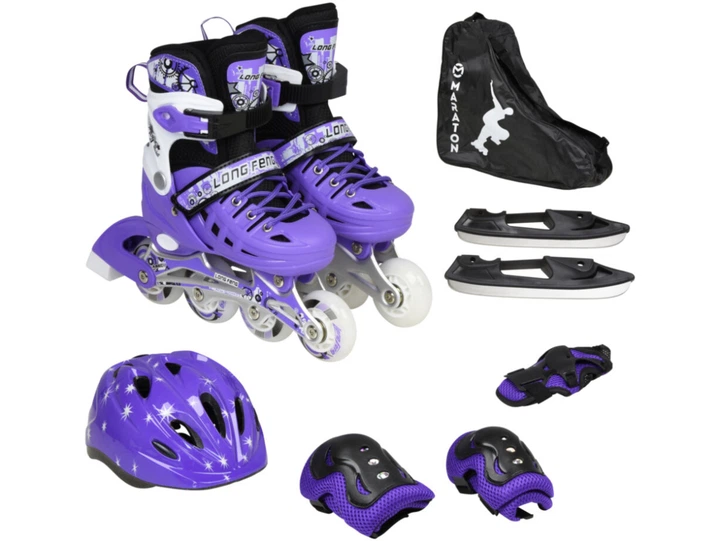 Розсувні ролики-ковзани Maraton Ice 2 в 1 з набором захисту та шоломом, колеса PU, розмір 34-37, Фіолетові