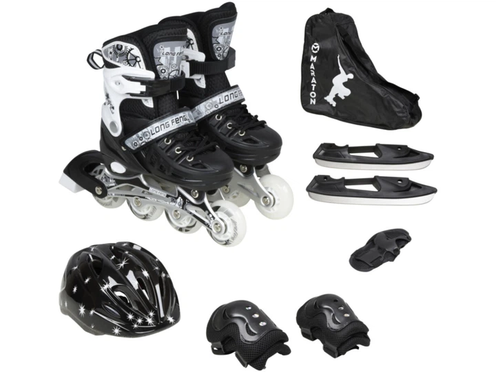 Розсувні ролики-ковзани Maraton Ice 2 в 1 з набором захисту та шоломом, колеса PU, розмір 34-37, Чорні