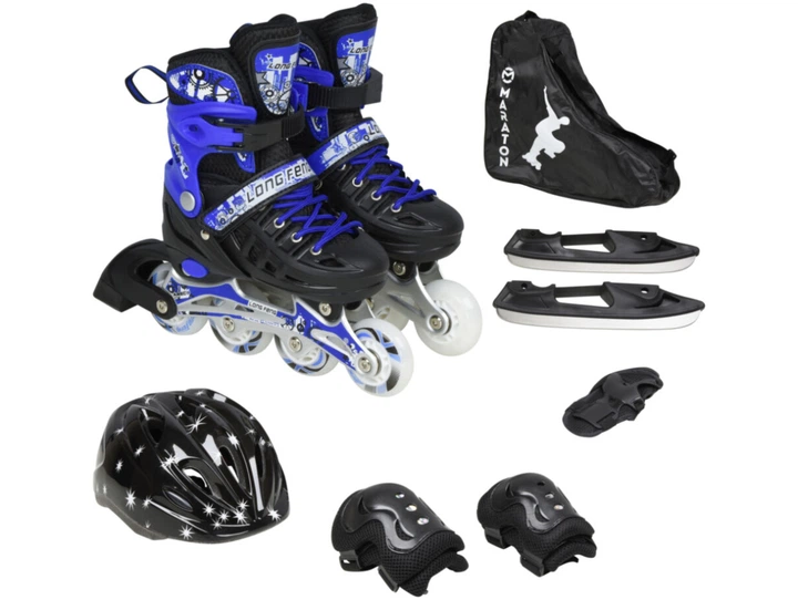 Розсувні ролики-ковзани Maraton Ice 2 в 1 з набором захисту та шоломом, колеса PU, розмір 34-37, Сині