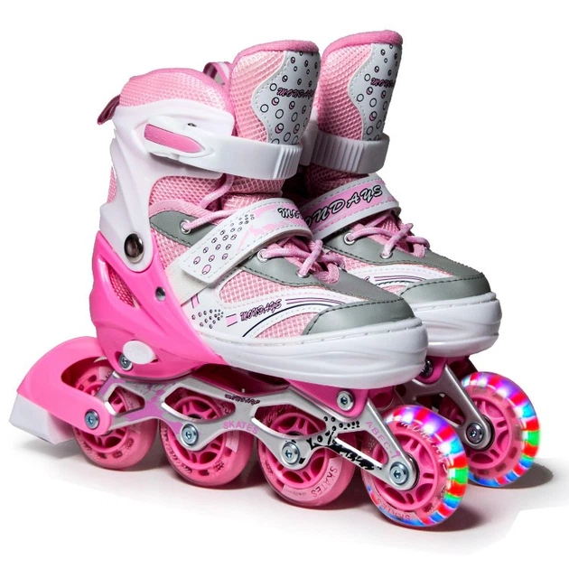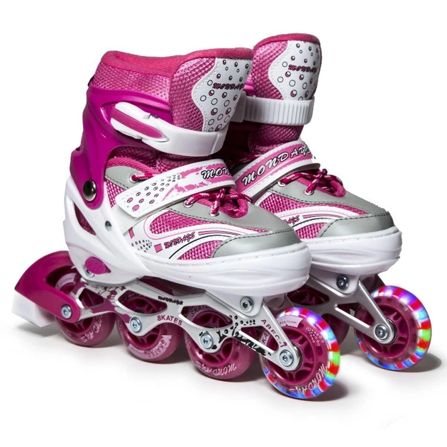 Розсувні роликові ковзани для підлітка 38-42 Happy Pink з підсвічуванням переднього колеса