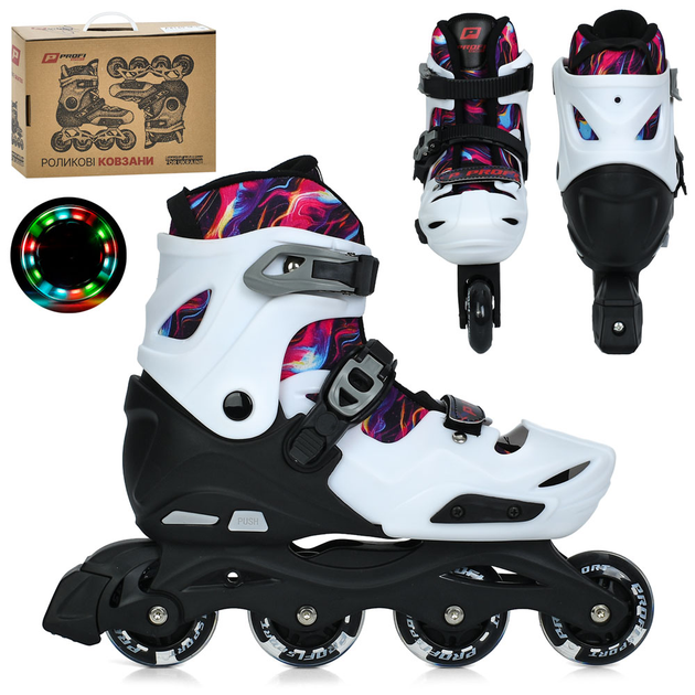 Ролики дитячі Profi Roller A4159-LW (розсувні, розмір 39-42, колеса: 4 шт. в один ряд/70 мм/PU, гальмо: задні, підсвітка, бі