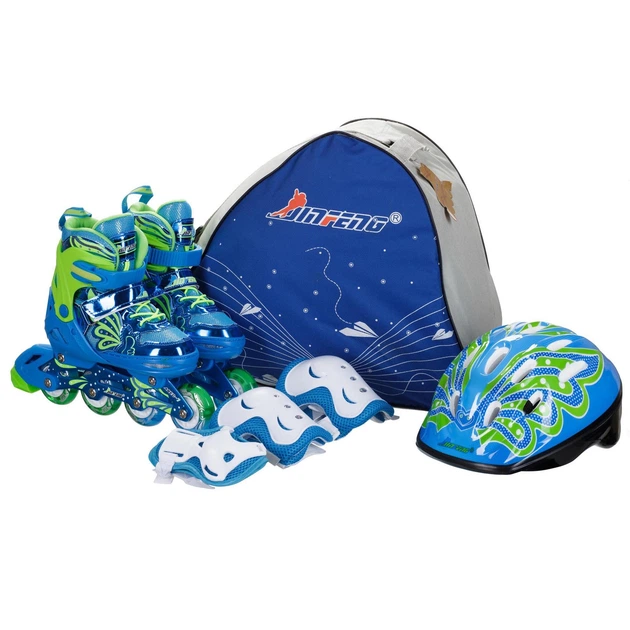 Роликовые коньки раздвижные детские с защитой и шлемом в комплекте JINGFENG 189 S Синій
