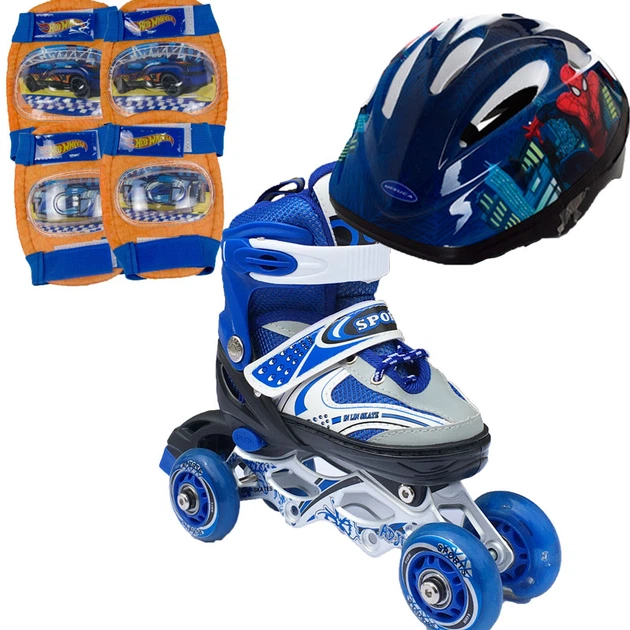 Роликові ковзани Ролики дитячі Набір Happy Combo Disney Rider (+ захист + шолом) з перестановкою коліс 29-33, СпайдерМен (Си
