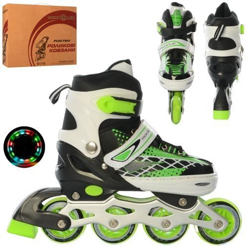Ролики Profi (35-38) РОЗМІРА з колісами, що світяться, зелені
