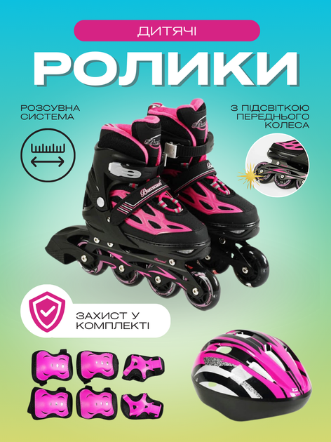 Дитячі роликові ковзани для дівчинки розсувні розмір 35 38 колеса PU устілка 21-23 см набір дитячі ролики комплект шолом і з