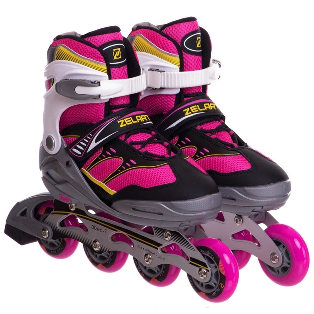 Роликові ковзани Z-1501 Zelart розсувні рожевий/жовтий розмір 38-41
