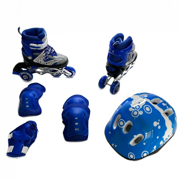 Дитячі ролики для початківців Happy з комплектом захисту, розмір 29-32, Сині