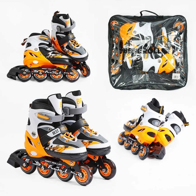 Ролики 75677-М Best Roller /розмір 34-37/ колір – ПОМАРАНЧОВІ колеса PU, ПЕРЕДНЕ КОЛЕСО СВІТЛО, стелька 21.5-24 см, d коліс