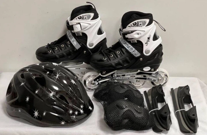 Набір дитячі розсувні ролики та ковзани для дівчинки/хлопчика із захистом та шоломом чорно-білі Maraton 2в1 (Ice M (35-38))