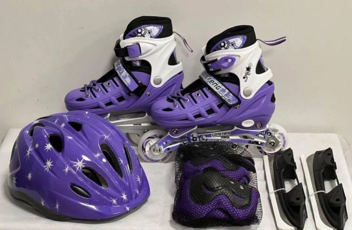 Набір дитячі розсувні ролики та ковзани для хлопчика/дівчинки із захистом та шоломом фіолетові Maraton 2в1 (Ice S (31-34))