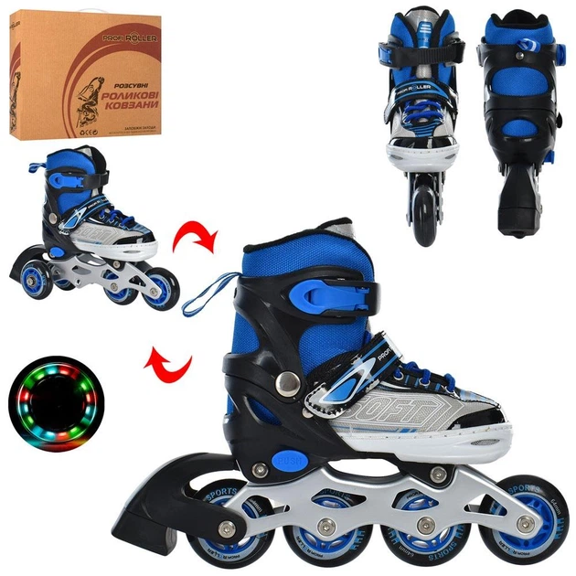 Ролики Profi 27-30 РОЗМІРА з колісами, що світяться Сині з чорним