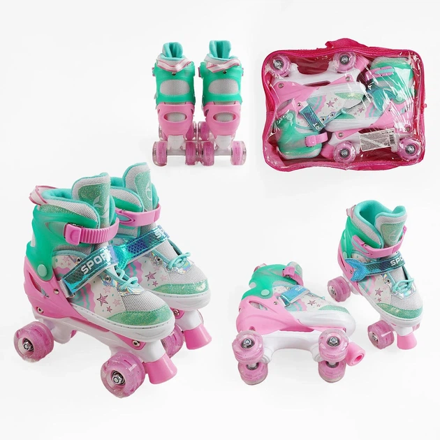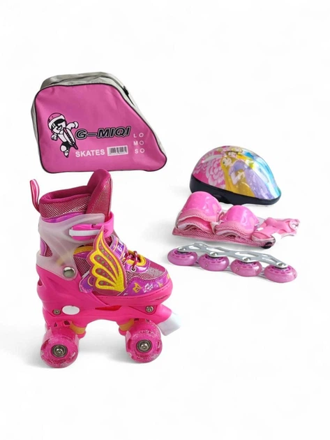 Дитячі розсувні ролики з набором захисту та шоломом розмір 35-38 для дівчинки (STL-155M) рожеві