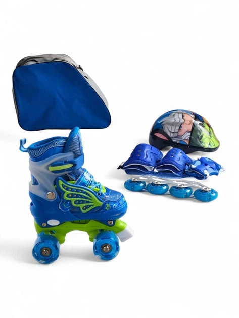 Дитячі розсувні ролики квади 2 в 1 із шоломом та захистом G-Miqi 512A-2T розмір 35-38 Blue