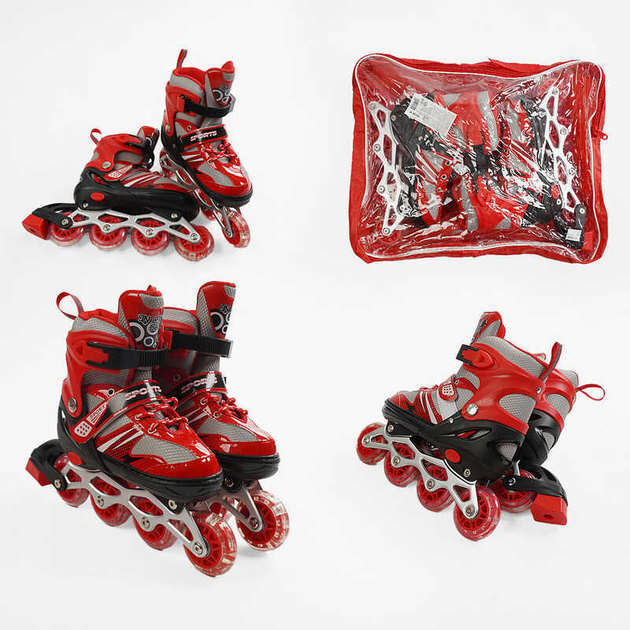Ролики 7595-s розмір 31-34 (6) колір червоний, колеса pvc, устілка 18.5-20 см, d колес – 4.5 см, в сумці
