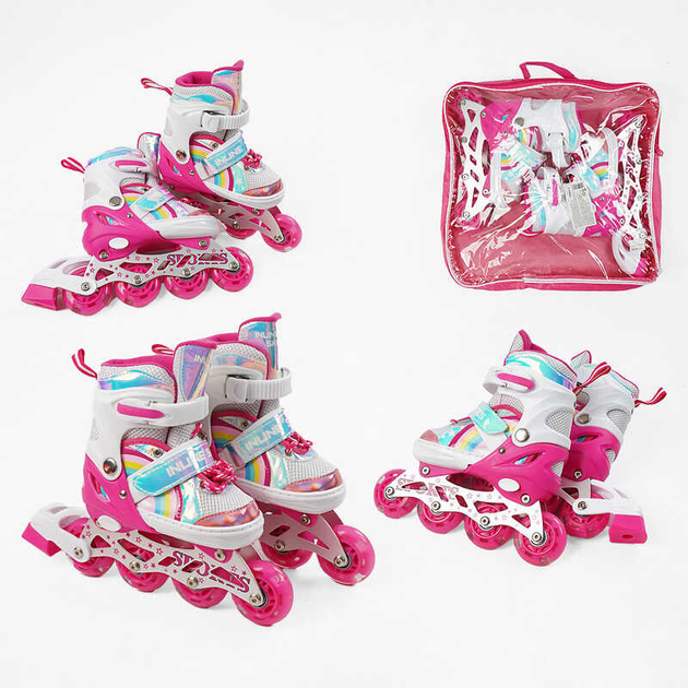 Ролики 75504-S розмір 29-33 колір РОЖОВИЙ, стель 18-20 см, колеса PU, d коліс – 6 см, підсвічування коліс, в сумці