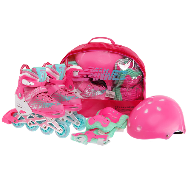 Роликові ковзани L 39-42 розсувні дитячі для дорослих для дівчинки для хлопчика із захистом та шоломом у комплекті Banwei ко