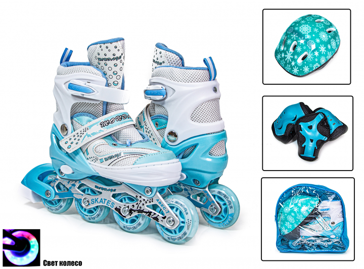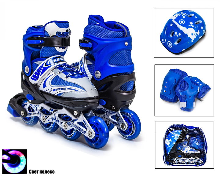 Набір роликові ковзани з комплектом захисту Happy HM-725 White-blue розмір 29-33