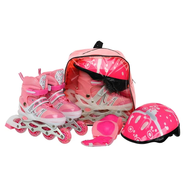 Роликові ковзани розсувні із захистом та шоломом Power Supers 9456 розмір 35-38 Pink-White