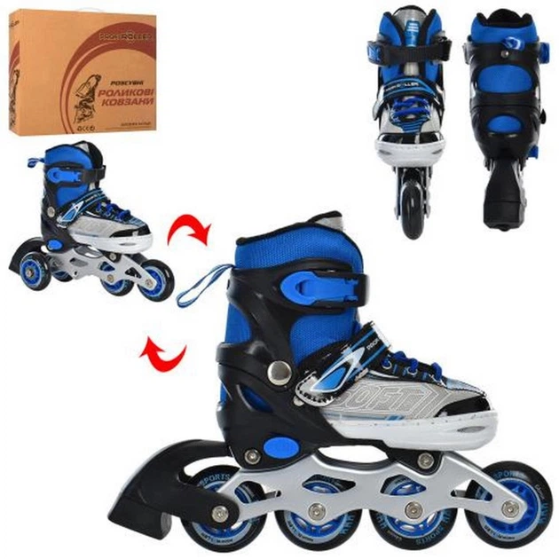 Розсувні ролики Profi зі шнурівкою та баклів для дітей від 6 років синього кольору зі колесами, що світяться. (557112)