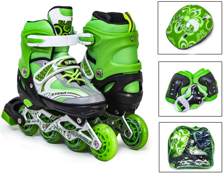 Дитячі розсувні ролики 29-33 з комплектом захисту та шоломом Happy Green підсвічування колеса