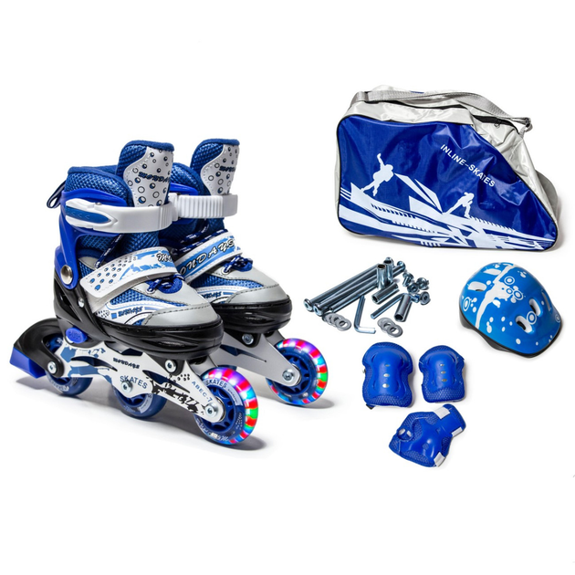 Дитячі розсувні ролики 29-33 з комплектом захисту та шоломом Happy Blue підсвічування колеса