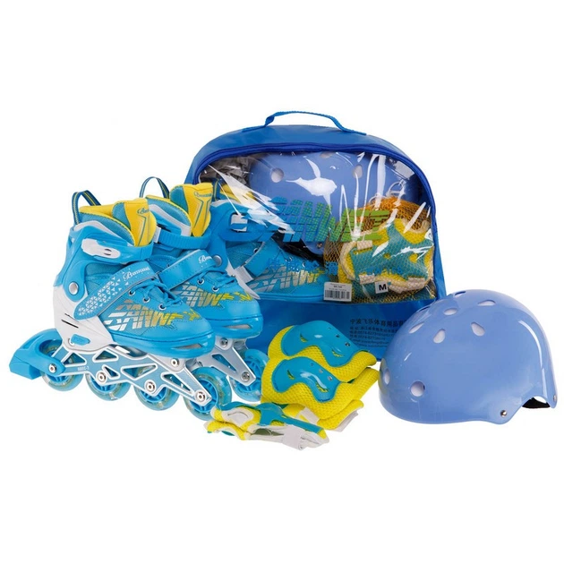 Роликові ковзани Zelart Banwei Kids 168 із захистом розмір 35-38 Light Blue-Yellow