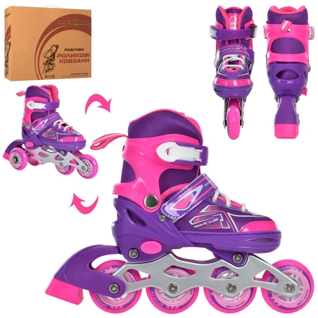 Розсувні роликові ковзани Profi фіолетові для дітей від 4 років з колесами, що світяться, і шнурівкою (557122)