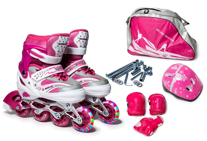 Розсувні ролики-ковзани Maraton Ice 2 в 1 з набором захисту та шоломом, колеса PU, розмір 29-33, Рожеві