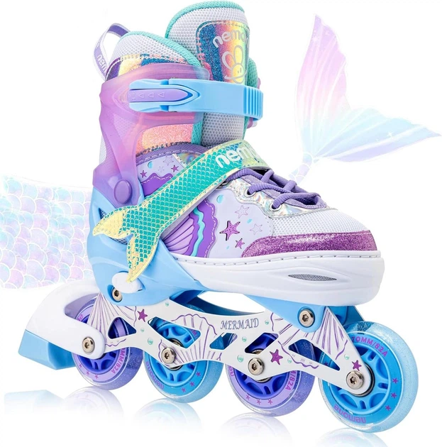 NEMONE інлайн ковзани для дівчаток, регульовані 32-36 EU, синьо-фіолетові, для дітей, інлайн ковзани для дому та вулиці
