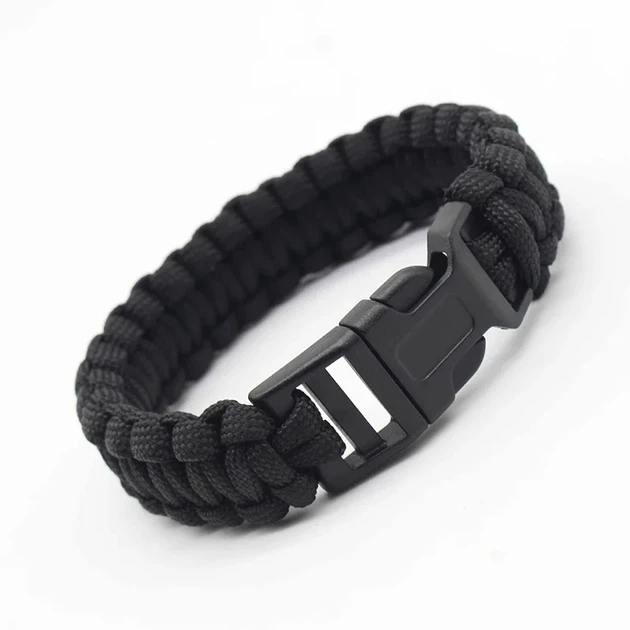 Паракорд браслет ZTZ 7 жив для туризму та виживання, міцне плетіння, із застібкою-фастексом 23 см (Чорний)