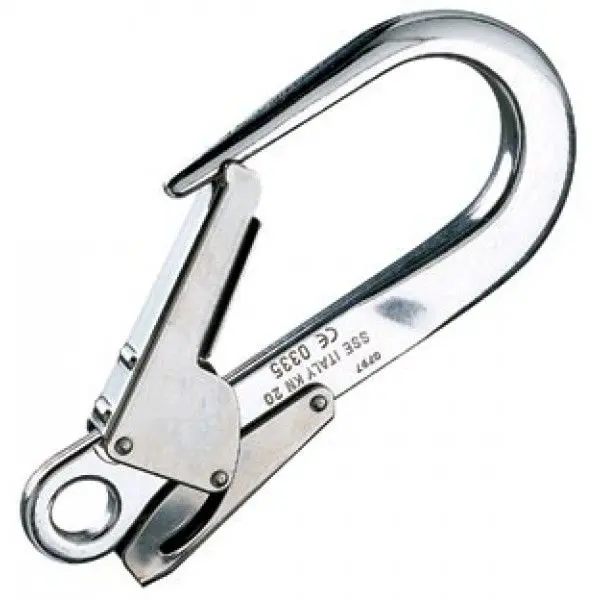 Кінцевий з'єднувальний елемент (карабін) EASHOOK OPEN створений для використання на кінцях строп. Роз'ємний елемент для приєднання дозволяє встановити карабін на стропи без додаткових сполучних елементів. У разі пошкодження стропи, карабін може використовуватися з іншою стропою. Ергономічна форма і фіксація запірного елемента (муфти) спрощують проходження проміжних точок закріплення.