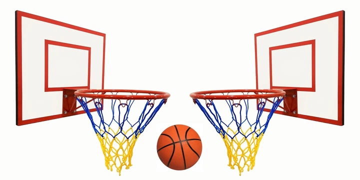 Комплект з двох ігрових баскетбольних щитів BF 60x50 см з кільцем №7 синьо-жовтою сіткою та м'ячем 40124