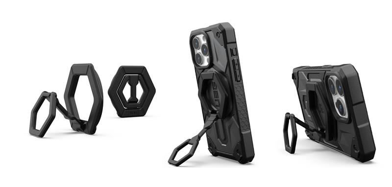 Надійно кріпиться до вашого телефону або чохла, сумісного з MagSafe, за допомогою надпотужних магнітів. Насолоджуйтесь зручним написанням текстів, прокруткою та фотографуванням однією рукою за допомогою тримача, що обертається на 360 градусів. Використовуйте його як підставку для перегляду відео або встановіть телефон у потрібне положення для оптимальних селфі. Міцні суцільнометалеві шарніри та фірмова шестикутна форма. Незамінний аксесуар для вашого мобільного способу життя. Особливості: Використовуйте з чохлом або без нього на телефоні, сумісному з MagSafe. Працює з MagSafe-сумісними чохлами UAG та інших виробників. Надміцна магнітна фіксація з можливістю позиціонування на 360 градусів. Встановіть телефон у горизонтальне положення для потокової передачі або у вертикальне для продуктивної роботи та селфі без допомоги рук. Поставляється в екологічній упаковці останнього покоління.