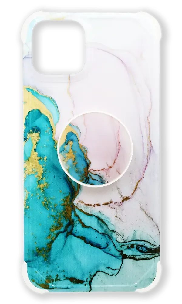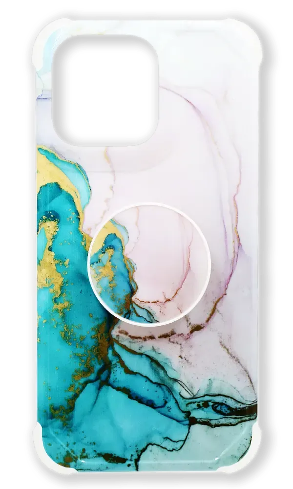Чохол силіконовий Marble + PopSocket для iPhone 13 Pro Blue/Pink