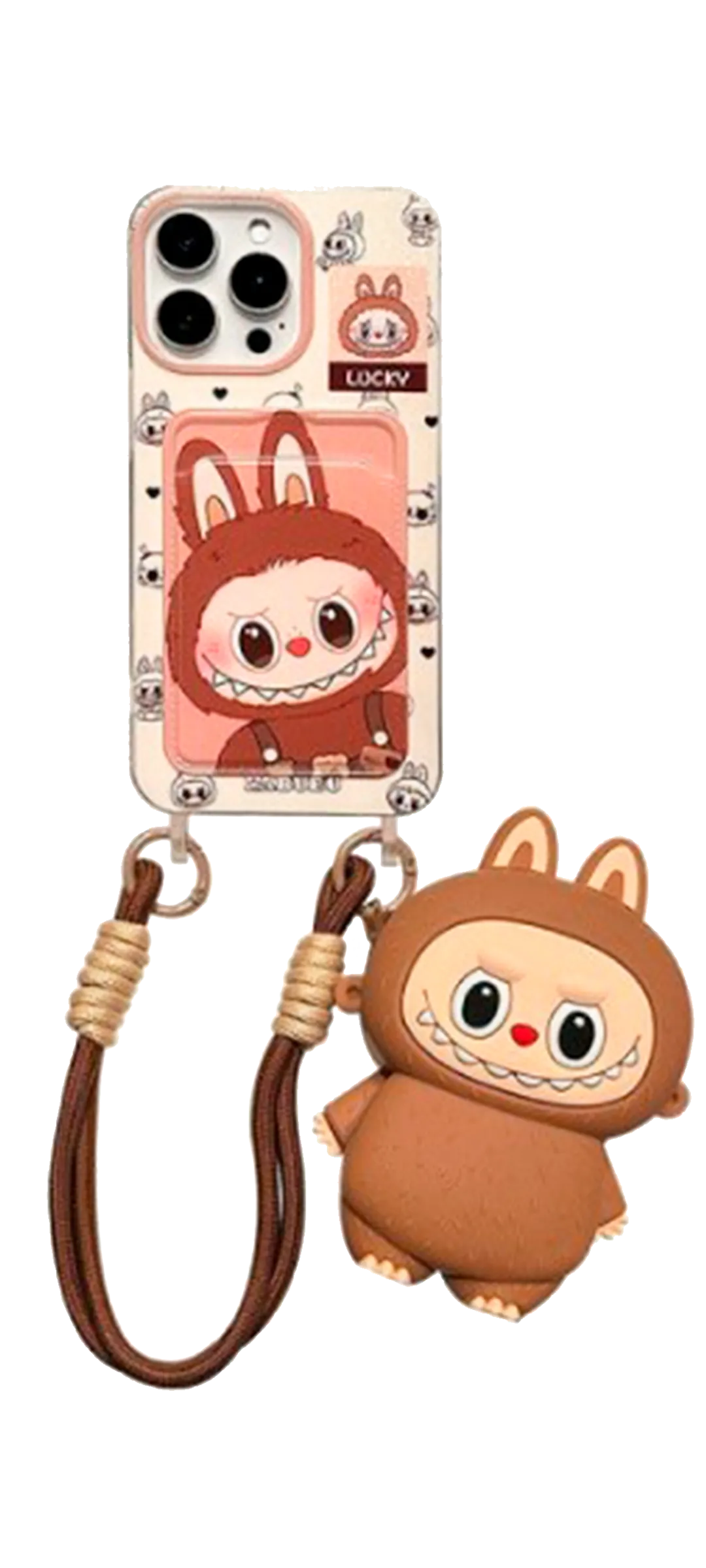 Чохол силіконовий LABUBU Popsocket 3D для iPhone 16 Pro Brown