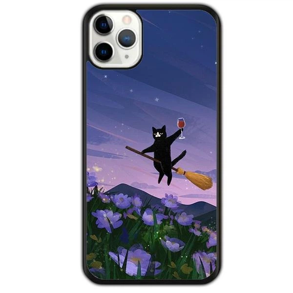 Чохол для Apple iPhone 11 Pro Кіт на мітлі Силіконовий Чорний