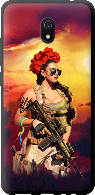 Чохол tpu чорний патріотичний на телефон Xiaomi Redmi 8A Українка зі зброєю "5316b-1794-58250"