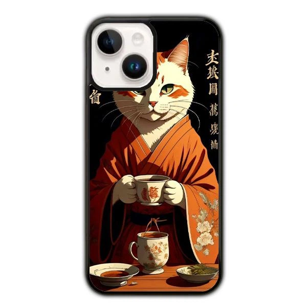 Чохол для Apple iPhone 14 Кіт самурай Силіконовий Чорний