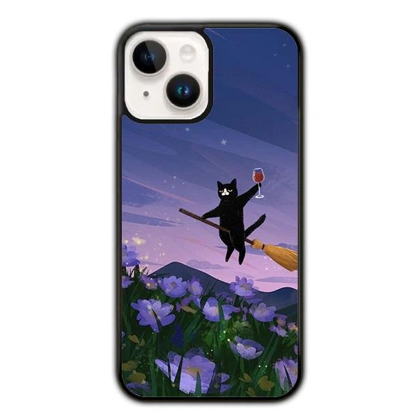 Чохол для Apple iPhone 14 Кіт на мітлі Силіконовий Чорний