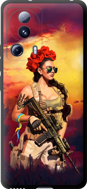 Чохол tpu чорний патріотичний на телефон Xiaomi 13 Lite Українка зі зброєю "5316b-3017-58250"